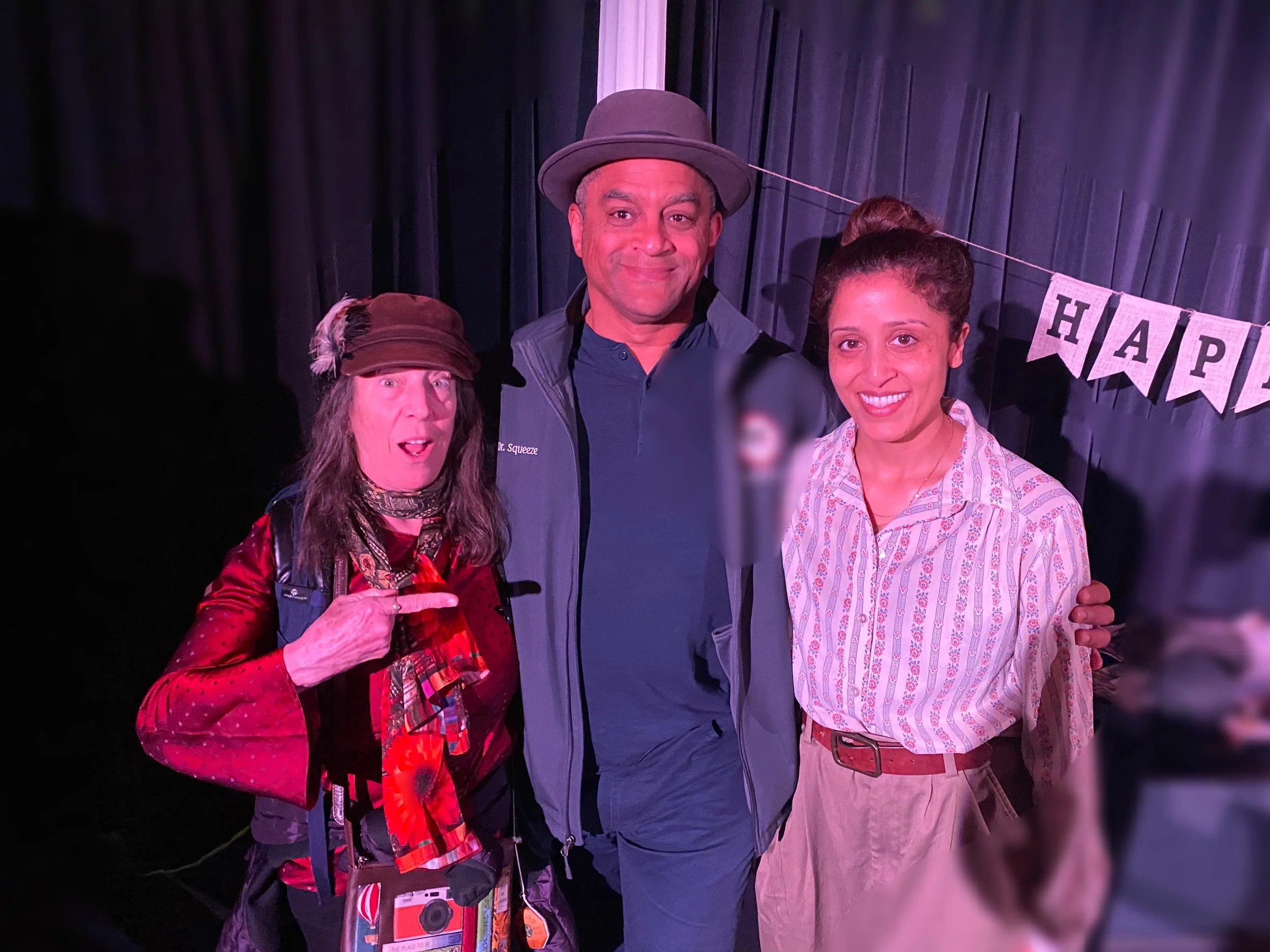 I later saw Amrita again in her show "Driving Around." The show took place in a smaller, more intimate space that was perfectly suited to the performance. When I entered the space, Amrita was already on stage, in character, reading a newspaper with a "Happy Birthday" banner behind her. Throughout the show, the audience got to know her character better. She even learned the names of almost everyone watching the show. Then, she took us on a journey exploring aging, gentrification, identity, and loneliness. Amrita used me as one of her "volunteers" during the show.